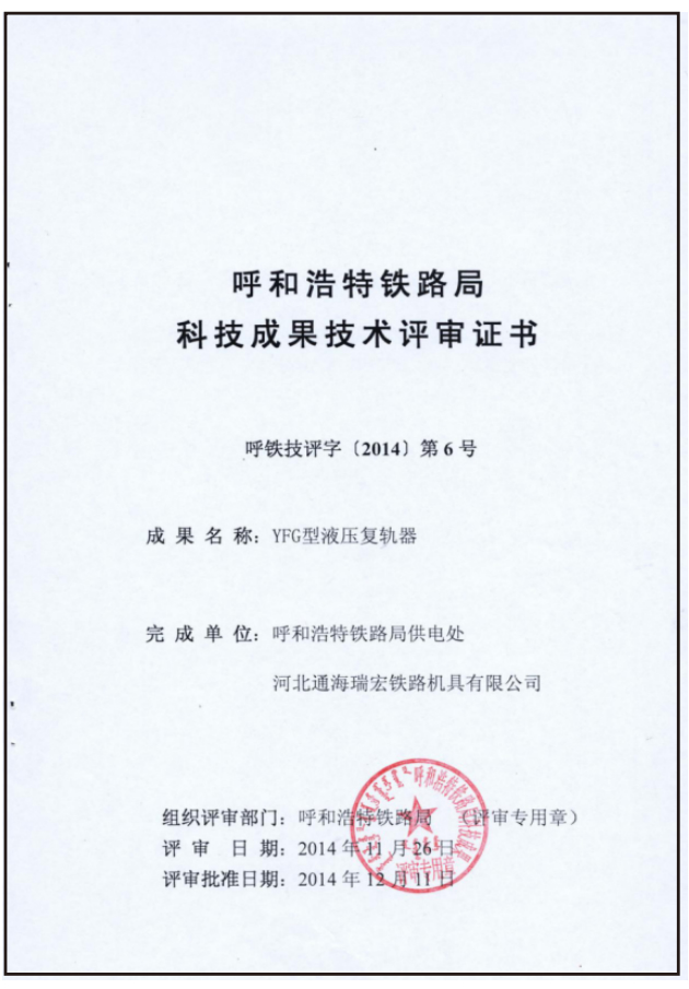 鐵路產品認證證書